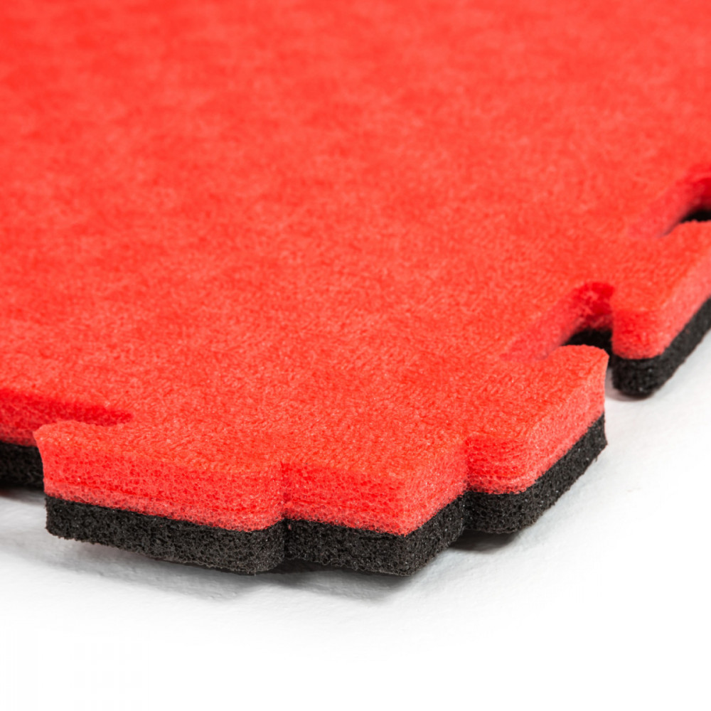 Универсальный двусторонний мат-татами для единоборств (100х100 см, толщина 20 мм). Цвет: черно-красный. Влагостойкое ЭВА-покрытие с замком "ласточкин хвост" для быстрой сборки тренировочных зон.
